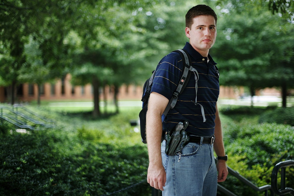 Three decades after he penned the Second Amendment, James Madison served on the six-member board that banned students from carrying guns and ammunition on the University of Virginia campus. Thereafter, guns were prohibited at American institutions of higher education as a matter of course. That all changed in 2004, when the state legislature in Utah passed a law that stripped public colleges of the authority to establish their own policies about firearms. The new law wasn’t precipitated by any particular event; there hadn’t been any mass campus shootings in the state, nor any recent high-profile college shootings anywhere else in the country. (The 1966 sniper attack at UT Austin was by then a distant memory.) The University of Utah fought in court for the right to set its own firearms policies, but lost.
