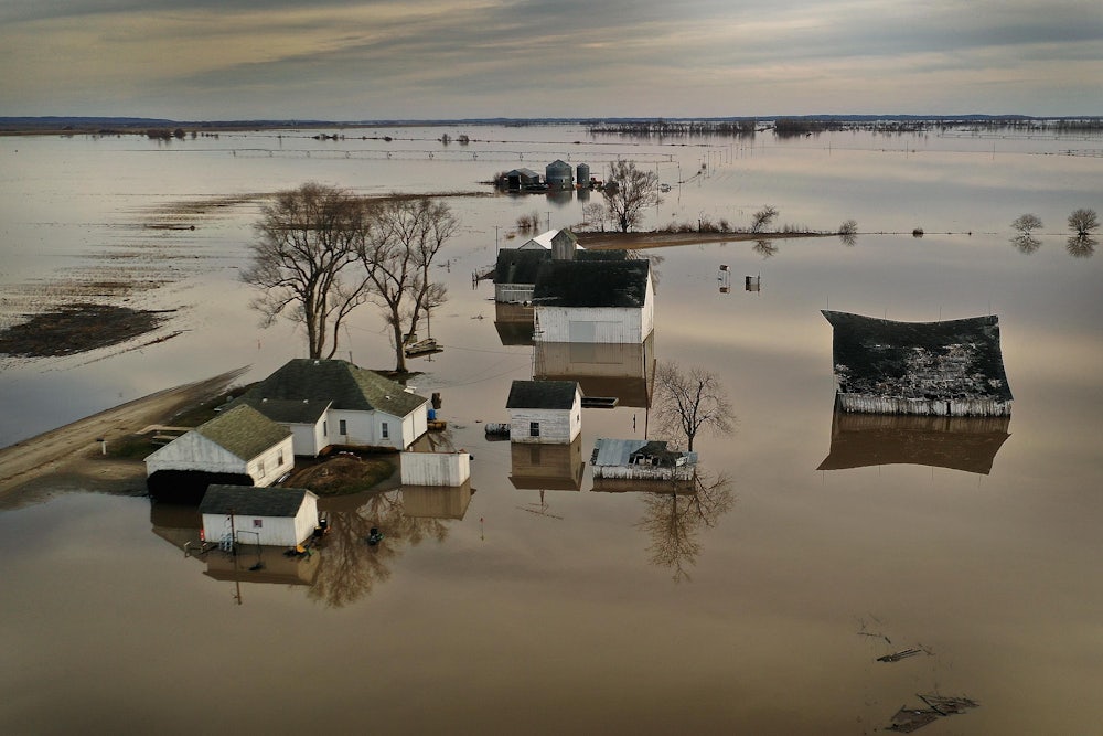 And now the Midwest has been hit with historic, devastating floods. Excessive snow melt and rainfall, notably the “bomb cyclone” two weeks ago, have caused vast fields of corn, soy, and other crops to be washed away. Countless hogs, calves, and chickens have been killed. Iowa is estimating $1.6 billion in losses, Nebraska $1.3 billion, but the overall damage is hard to calculate because the floodwaters haven’t receded. It’s likely they’ll get worse. “The extensive flooding we’ve seen in the past two weeks will continue through May and become more dire,” Ed Clark, director of NOAA’s National Water Center, said in a statement to Vox.