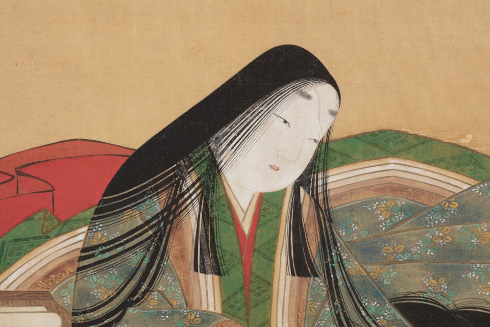 This doesn’t amount to a coherent political analysis, of course. But reading and looking at Genji today is a lesson in the possibilities of beauty even as the world falls apart. Sure, Genji and his pals were relentless decadents, the .01 percent, first against the wall when the revolution comes. Shikibu only notices peasants enough to describe them as ugly and stupid. But the characters take joy in affixing a handwritten message to a blooming branch, in attending an all-night gossip session around a lit brazier on a porch, and in falling in and out of love. These are nice things to remember, the kind of fleeting sensual experiences that will last as long as flawed humanity. As Shikibu writes of Genji: “Despite himself he could not help seeing that that old habit of his, to suffer agonies for impossible desires, was with him still.”