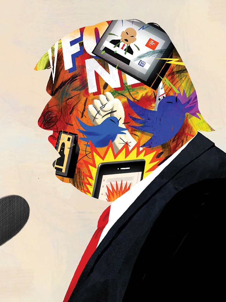There was a time, before he’d ascended to the most powerful political office in the world, when this sort of opaque feud was something like Donald Trump’s only job. He pursued it with his whole being, albeit (and yet again) not with much in the way of style. As Hurricane Sandy bore down on New York City in 2012, Trump took a moment to tweet about the “double standard” that allowed Bette Midler to joke about his hair but made it so that he was “not allowed to talk about her ugly face or body.” (Trump revived his obsessive Twitter feud with Midler during a state visit to England in early June, as this piece was going to press.) He tweeted dozens of times, with similar artlessness, about Vanity Fair editor Graydon Carter, who had memorably and serially mocked Trump during the 1980s. “Graydon Carter has no talent and looks like shit!” Trump tweeted five days before Christmas in 2012. “Also, his food sucks!” (Trump is presumably referring here not to the editor’s personal meat loaf recipe but to the menu at the Waverly Inn, the “bad food restaurant” that Carter opened in the West Village.) Long-running online blood feuds with the brassy star of Beaches and the editor of a magazine for and about rich people are not the sort of behavior ordinarily associated with populist politicians. But then Trump had not yet rebranded himself as one.