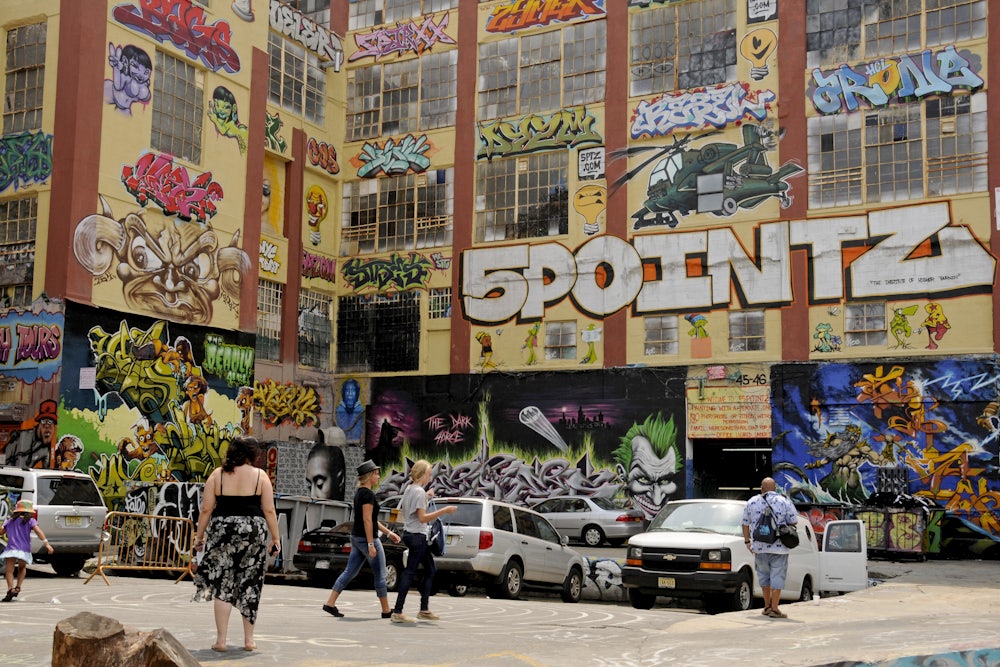 Was the work at 5Pointz graffiti, a mural, or something else? Well, it depends who you ask. The whole premise of GFNYC, marking its twentieth anniversary this year, runs against the appraisal work done on 5Pointz, which debunked the notion that graffiti brings properly values down. Quite the opposite: The art dramatically increased the value of Wolkoff’s property. And Wolkoff didn’t need a court judgment to know it. In 2012, the production company Summit Entertainment had rented studio space from Wolkoff in order to shoot its film Now You See Me with 5Pointz art as backdrop. By 2013, as many as 10 tour buses, chock-full of tourists, were coming to 5Pointz a day. Rents in the fledgling new cultural epicenter of Long Island City went up—and developers took notice.