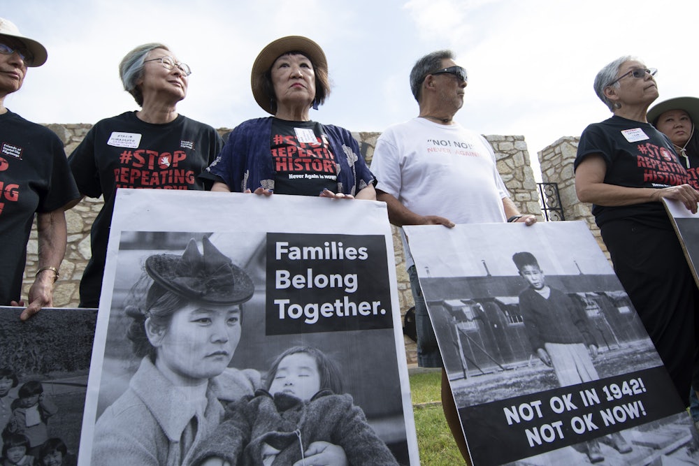In the throng of protesters assembling outside the Fort Sill gates after I arrived was Satsuki Ina, who was born in captivity in a similar California camp where her family had been held during the war; now 75, Ina told the assembled reporters why the protest was so important to her. “We are here,” she said, “to say: ‘Stop repeating history.’”