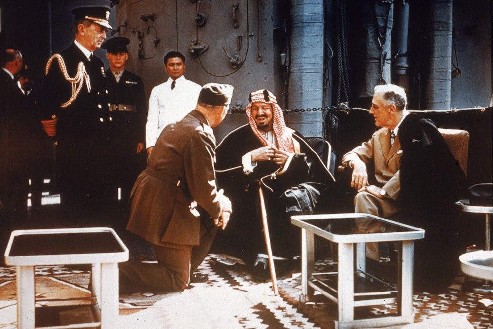 February 14, 1945, Saudi Arabia’s King Abdulaziz Ibn Saud, his advisors, and United States Envoy William Eddy crossed the gangplank from the USS Murphy to the USS Quincy for