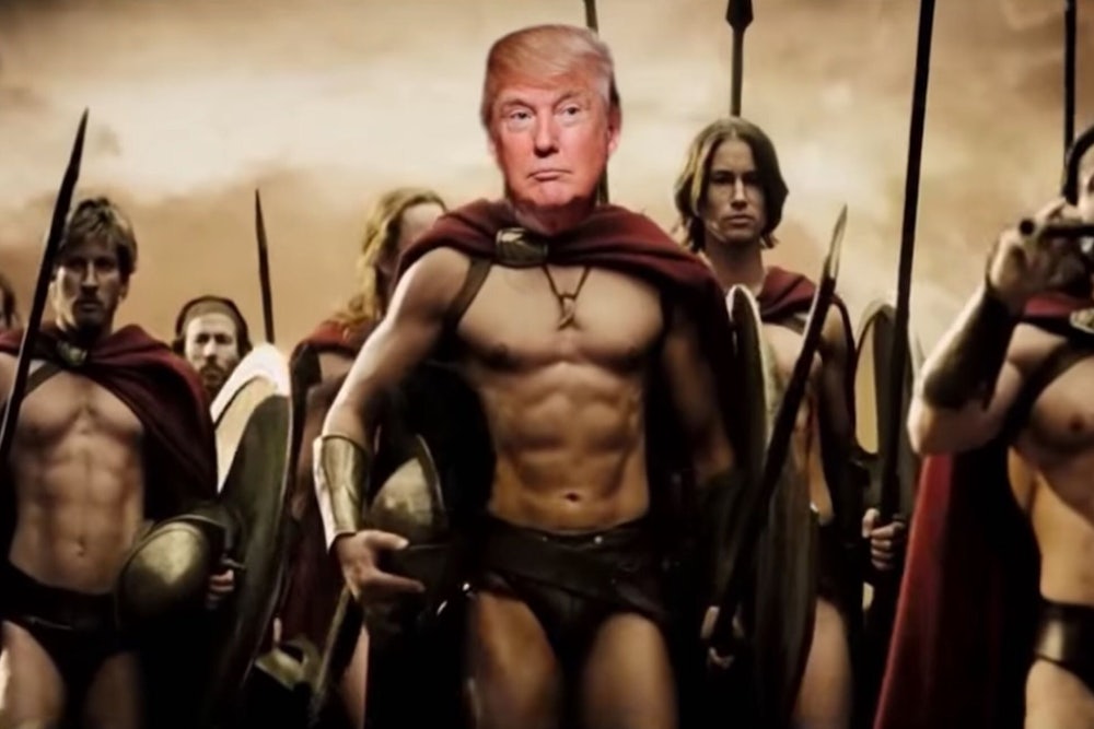 But this twisted veneration of the Spartan myth looms larger than just Leonidas’s single quote. Thermopylae imagery was rife among supporters of Trump’s presidential bid. A still-public 2016 YouTube video posted by a user under the handle “Aryan Wisdom” depicted then-candidate Trump as Leonidas, holding back a Persian army that included Soros and Obama. At the time of this writing, the video has been viewed over five million times. The far-right white nationalist Identitarian movement’s symbol, blazoned in gold against a black background, is the circle of an aspis, the round shield that was a Spartan warrior’s principal piece of equipment. It is divided by the upside-down V of the Greek lambda, the sigil falsely believed to have been painted on Spartan shields at Thermopylae. “Generation Identity,” a fast-growing European Identitarian party, explains the significance of adopting the Spartan shield for its movement by way of relating the 300 myth: “Both ancient and modern writers have used the Battle of Thermopylae as an example of the power of a patriotic army defending its native soil.” This appears on the site’s “frequently asked questions” page, just above a section titled “What does the term ‘Great Replacement’ mean and who is responsible for it?”