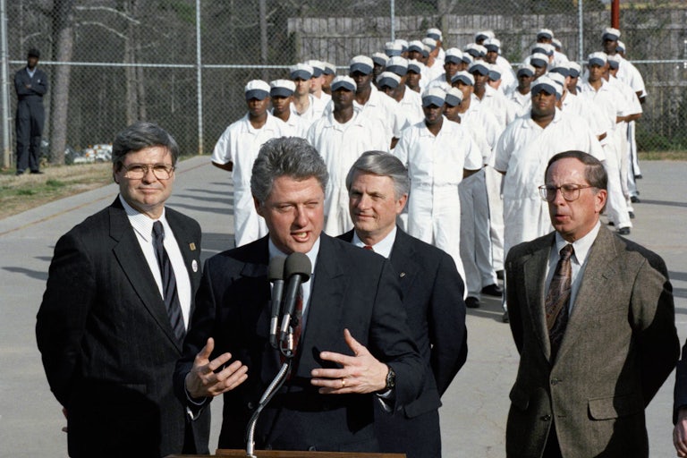 A week before he swept the South on Super Tuesday in 1992, Bill Clinton held an event in Stone Mountain, Georgia, the site of the rebirth of the Ku Klux Klan in 1915. His campaign had gathered dozens of mostly black inmates for a photo op in the courtyard of the Stone Mountain Correctional Institution, which was built at the base of the massive Confederate bas-relief carved into the side of the mountain. Some of the other presidential contenders saw the event as little more than a cynical racial appeal to socially conservative white voters. “Two white men and 40 black prisoners, what’s he saying?” California Governor Jerry Brown asked. “He’s saying, we got ’em under control folks, don’t worry.”