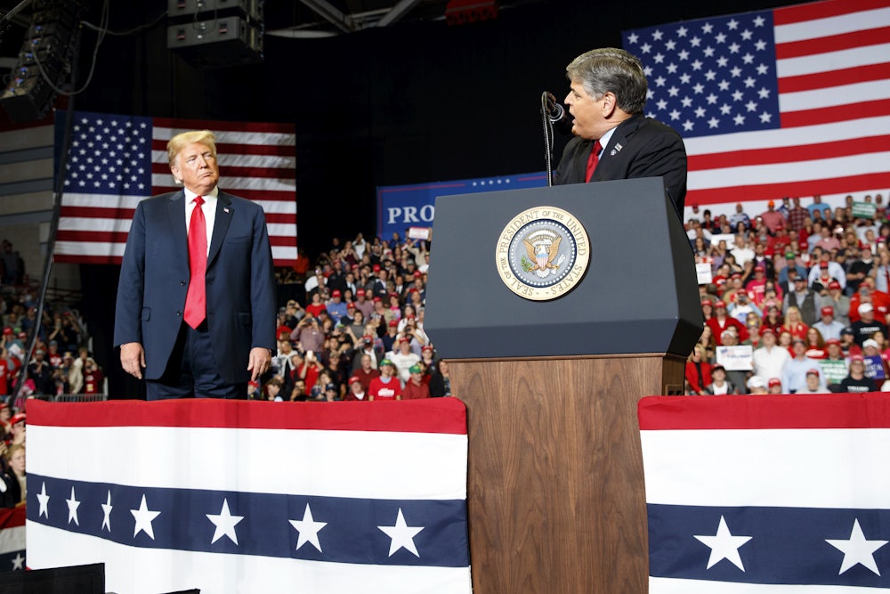 In a different time, with a different president, Fox would have brushed such criticisms aside, but in August, longtime Fox Business host Neil Cavuto asserted his journalistic independence—“My job is to cover you, not fawn over you or rip you”—and pundit Brit Hume said that Fox News “isn’t supposed to work for you.” This lovers’ quarrel caused speculation in the press about a split between the president and a network that has lately earned the derisive nickname “state television,” but in truth, there have always been dissenters at the network. Shepard Smith, Fox’s chief news anchor, and Chris Wallace, its owlish Sunday host, frequently jab the president and his administration; Tucker Carlson has waffled back and forth; and Trump has hit back—frequently, viciously, and whenever it suits him. In 2016, his feud with Megyn Kelly led him to boycott multiple Fox debates. More recently, he has criticized such Fox personalities as John Roberts, Gillian Turner, and, of course, Smith, of whom he said, “Watching Fake News CNN is better.”