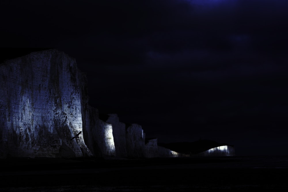 With Brexit, these cliffs are taking on a new role, becoming a blank canvas on which competing narratives are projected. Staunch “Remainers” have sought to cast the cliffs as “outward-looking,” with former Prime Minister Gordon Brown calling it a “highway to the rest of the world.” The “Leavers” say Dover tells a different story. “Dover and out,” The Sun tabloid declared—a message it then literally projected onto the cliffs—when former Prime Minister Theresa May officially started the process of exiting the European Union on March 29, 2017. Later, The Sun ran a front page featuring a supersized image of May standing at the cliffs’ edge, two fingers raised in a V, beneath the headline “UP EURS.”