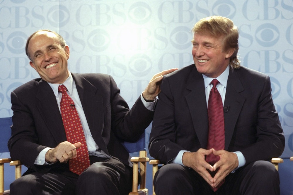 The press proposed various theories to explain how this once-revered eminence had become a maladroit Kent to Trump’s deranged King Lear. Some said Giuliani had a misguided sense of loyalty, others that he had been off his rocker since the death of his political consigliere Peter Powers in 2016. In reality, he has been practicing for his role as Trump’s chief conspiracist for decades. His entire career has been conducted in shout-driven, near-paranoiac overdrive. As a federal prosecutor in the 1980s, he courted the tabloids, donning a leather jacket to conduct a fake drug deal. He also designed the “perp walk” to parade arrested Wall Street executives before the press. In 2000, he held a somber press conference to announce his divorce even before he told his wife.