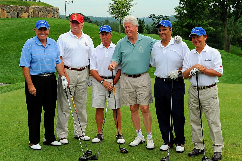 There is always a photograph, and so naturally there is a photograph. This one was taken during the summer of 2008, on a golf course owned by President Donald Trump in New York’s Westchester County. Despite whatever accidental prescience the image might since seem to have acquired, the photo itself was and remains just what it is: artless proof that some wealthy and powerful men—in this case Rudolph Giuliani, Donald Trump, Michael Bloomberg, and Bill Clinton—had at some point posed together on a golf course with their respective Big Bertha drivers out.