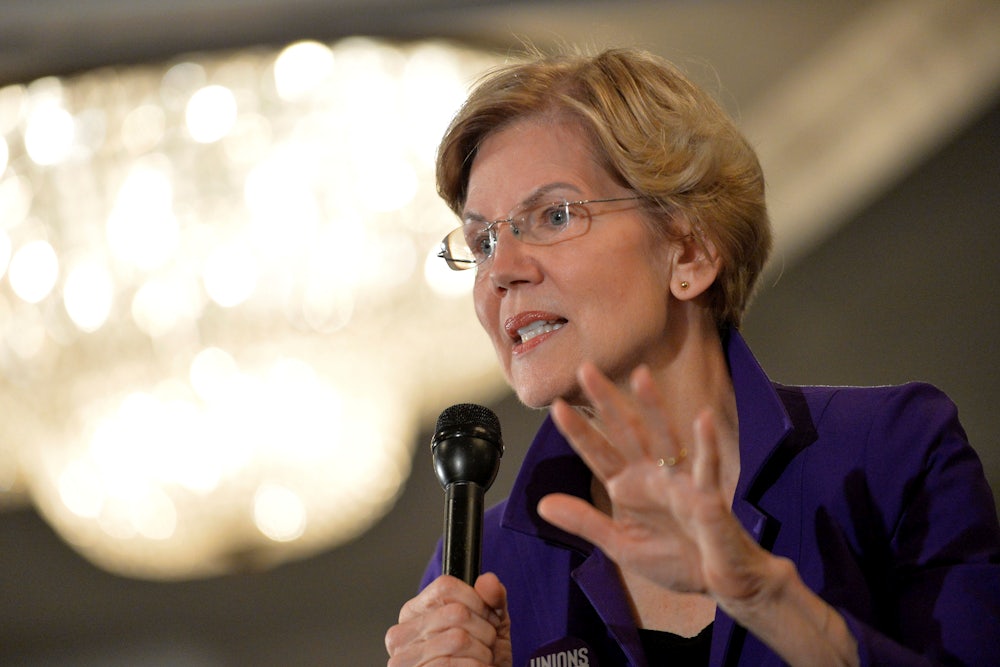 Warren’s proposal would cap premiums at 5 percent of income—which would be competitive with most, if not all, employer-sponsored insurance; competing plans among the Democratic field peg the cap at 8 percent. The covered benefits would match those enumerated in Bernie Sanders’s Medicare for All bill. Confusingly, she also claims the bill would “gradually decrease to zero” the cost-sharing, like premiums and co-pays, in “subsequent years.” This is essentially saying the public option would morph into free healthcare at some point—like Medicare for All, but without the abolition of private insurance. Who but the obscenely rich would keep paying for private insurance if there’s a free public option that covers everything? And why would such a plan be easier to pass than Medicare for All? Those questions remain unanswered.