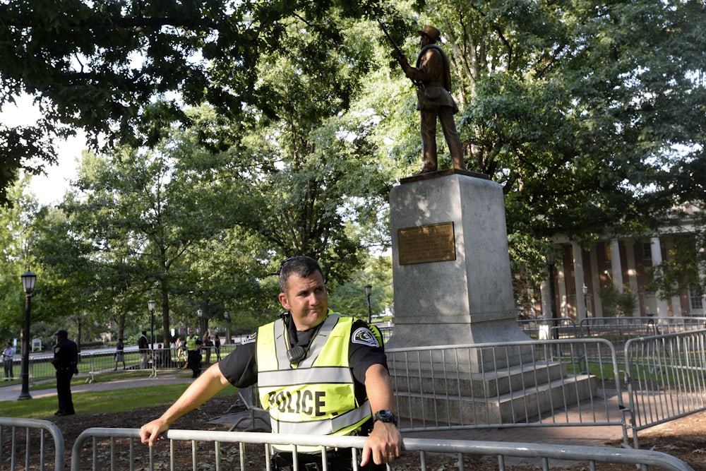 Last Wednesday, with large swaths of the American workforce winding down and looking ahead to a long weekend, an unusual deal was struck. The University of North Carolina’s board of governors, the group that sits atop the state’s public college system, announced that it had reached a $2.5 million agreement with the Sons of Confederate Veterans (SCV). The lawsuit filed by SCV concerned the decision by the state’s flagship university, UNC-Chapel Hill, not to remount its controversial Confederate statue, known popularly as Silent Sam, after students tore it down last August. Rather than take the case to court, the UNC board settled with SCV, with the terms of the agreement stipulating both that SCV would receive custody of the statue and that the $2.5 million trust had to be spent on “certain limited expenses related to the care and preservation of the monument, including potentially a facility to house and display the monument.”