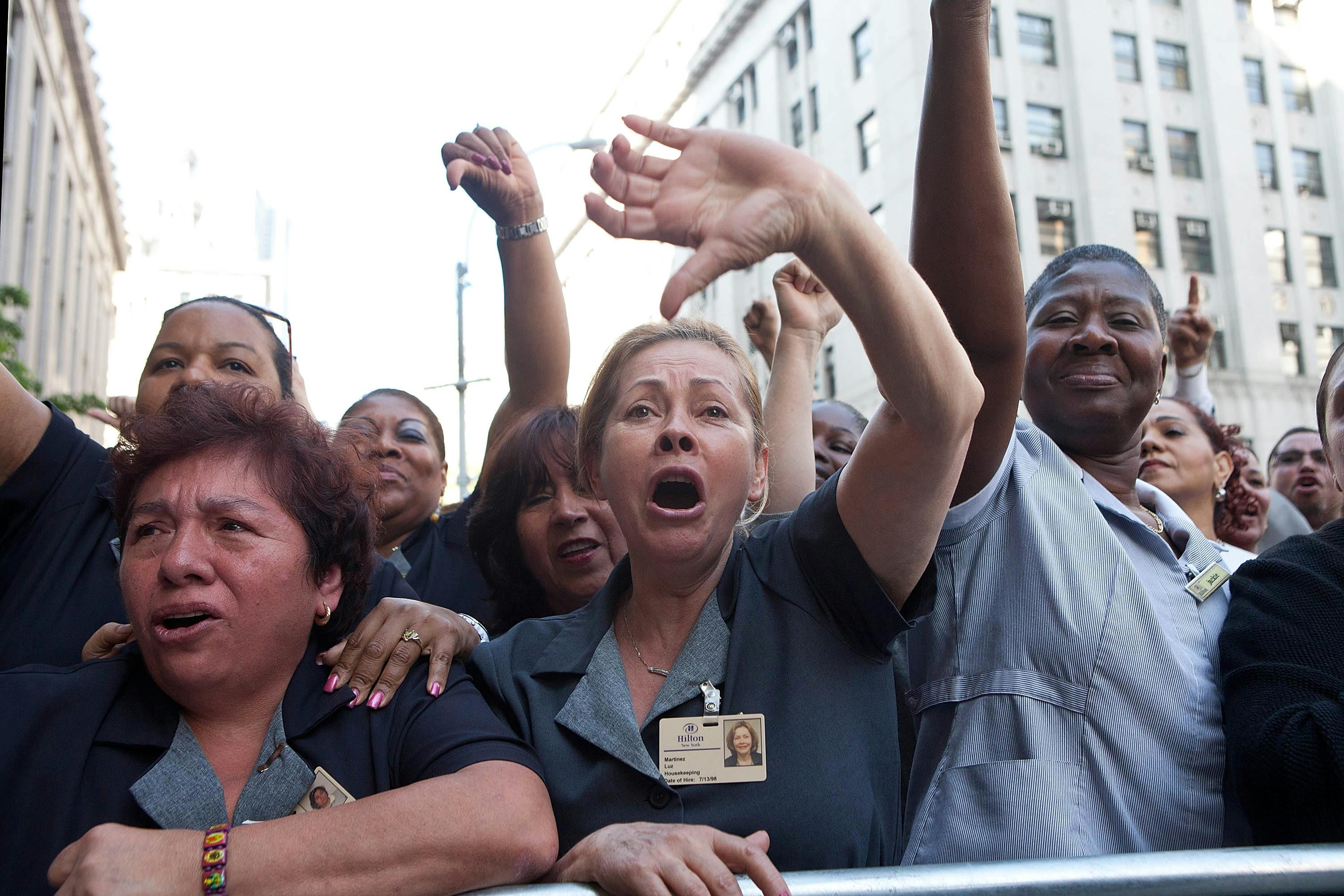 The panic button is elegant in its simplicity. Hotel workers, particularly housekeepers and cleaners, are often on their own while performing their labor—a vulnerable position in view of the gendered, and often racial, power dynamics at play between them and the guests whose rooms they’re cleaning. As the AFL-CIO noted on its blog, “There is a clear power imbalance between men who pay for hotel rooms and the women, often immigrants or women of color, who clean their rooms alone.” So Unite Here workers in hotels can now carry a panic button—a GPS-enabled device that can be easily concealed in clothing—to alert and direct hotel security guards whenever they feel unsafe on the job. It’s akin to the line of devices marketed to seniors that transmit the message “I’ve fallen and I can’t get up,” except here its main purpose is to shut down creeps and protect workers from harm.