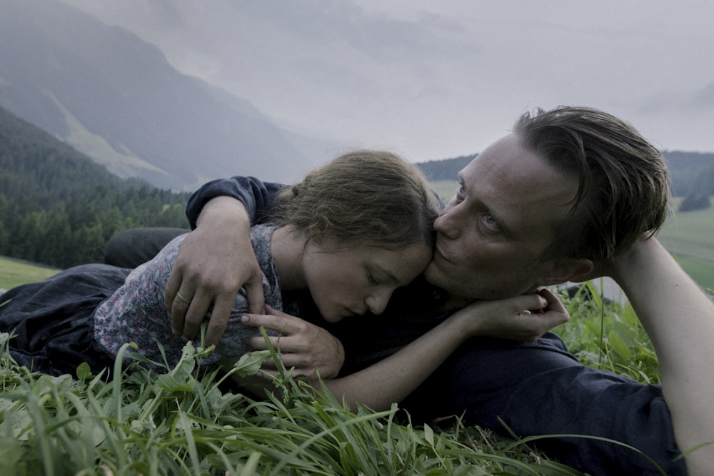 As usual in Malick’s work, plot is subsumed by image and idea, and here the entire narrative arc can be ascertained from the trailer. Although it is based on real events, the story is spookily well matched to the writer-director’s sensibility and preoccupations. Early in the war, Franz Jägerstätter (August Diehl), an Austrian farmer who lives in a remote village with his wife, Fani (Valerie Pachner), and their children, is called up to fight. He begins his training, but his conscience will not allow him to swear the requisite oath to Hitler, and this refusal propels the story. Seemingly alone in his objections to fascism, or at least in his determination to act on them, he remains steadfast while everyone—from relatives to neighbors to the local priest to the military authorities to a lawyer assigned to defend him—presses him to abandon his position.