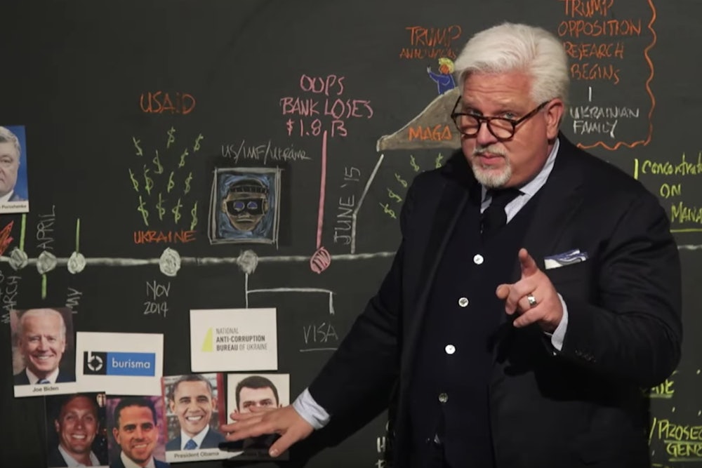 Today, Glenn Beck looks almost nothing like the clean-shaven pundit who became famous delivering tearful Fox News monologues and emceeing Tea Party rallies. He has traded his signature dress shirts for scholarly sweater vests, horn-rimmed glasses, and a sage Vandyke beard. He also has a new role to match: as an anti-impeachment conspiracist who, for much of October and November, used his show on BlazeTV to unravel a bizarre theory about the Democrats’ alleged misdeeds in Ukraine—a mystery story he likened to “a bad episode of Columbo.”