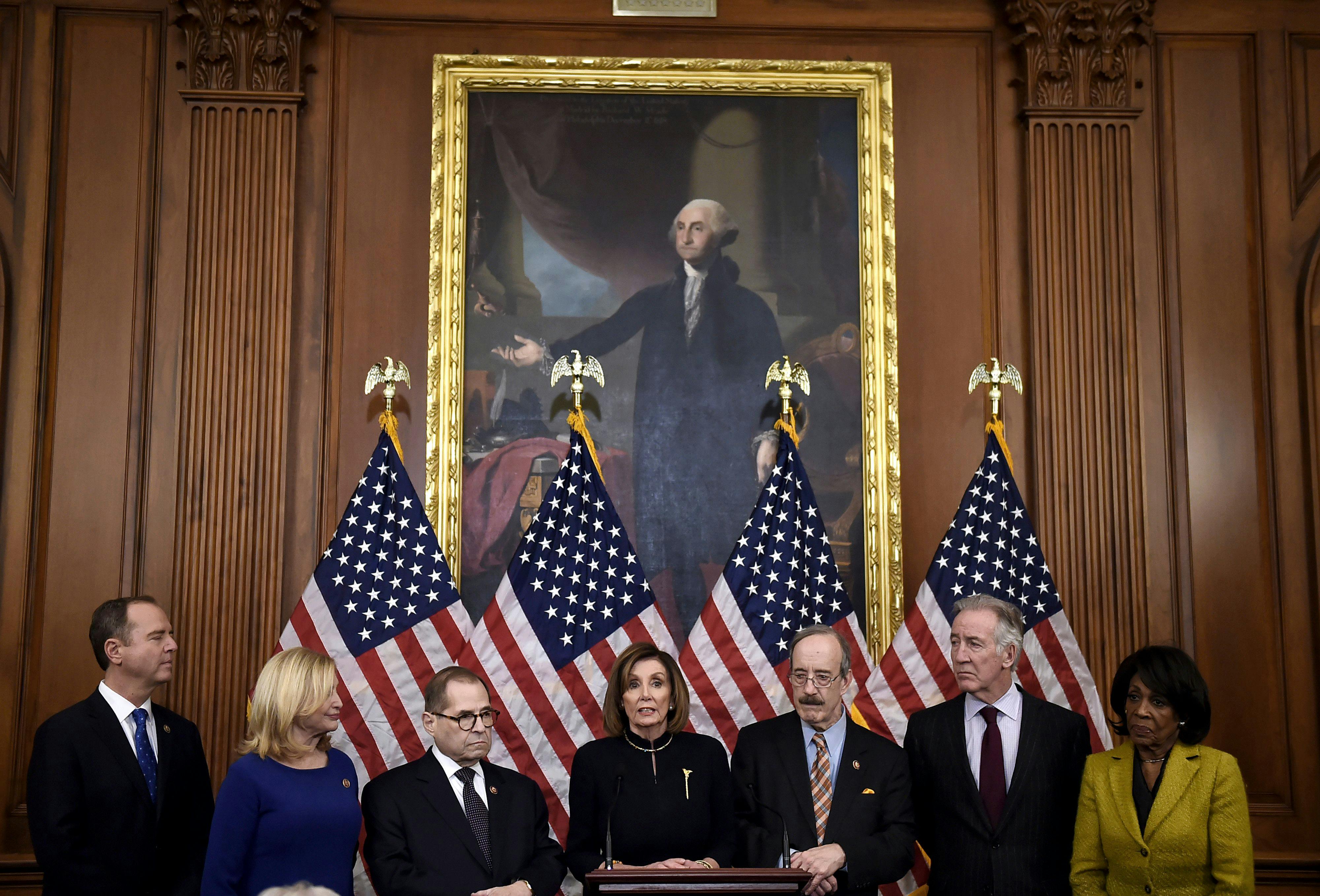“We will make our decision as to when we are going to send it when we see what they are doing on the Senate side,” Pelosi told reporters. “So far, we have not seen anything that looks fair to us.” One day earlier, Senate Majority Leader Mitch McConnell rejected a request to hear testimony from four witnesses, including acting White House chief of staff Mick Mulvaney and former National Security Adviser John Bolton, during the trial. Neither of the two men testified before the House during its impeachment inquiry.