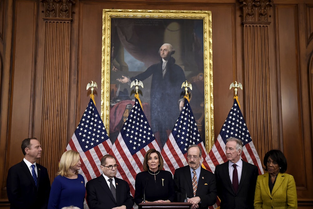 The House of Representatives took a historic step this week by approving two articles of impeachment against President Donald Trump. Now the House’s leaders are mulling an unprecedented next step: withholding those articles from the Senate—and effectively blocking the president’s trial there—as leverage in negotiations over the rules for that trial. Speaker Nancy Pelosi suggested that she might go that route in a press conference after Wednesday’s vote, and other top House Democrats voiced support for the possibility.