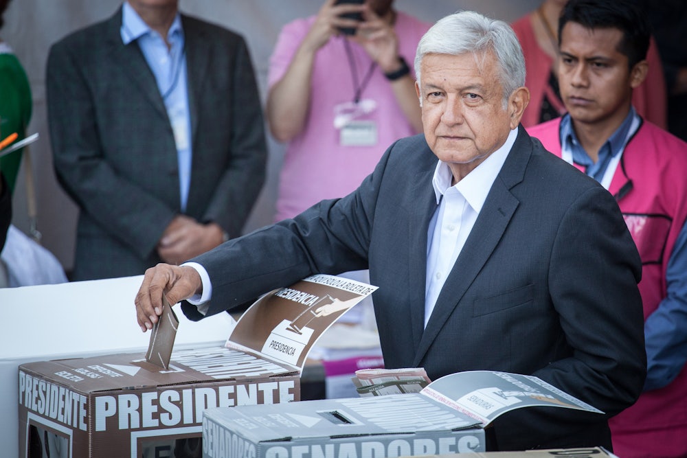 Yet the first year of AMLO’s term unfolded quite differently than his supporters on the progressive and center-left, both in Mexico and the United States, had hoped. From a Donald Trump–backed crackdown on migration—over 29,000 undocumented migrants were detained by Mexican authorities in June alone, a 204 percent increase over the same month the previous year—to AMLO’s ambiguous views on abortion, same-sex marriage, and drug reform, there is little of U.S.-style progressivism in his administration.
