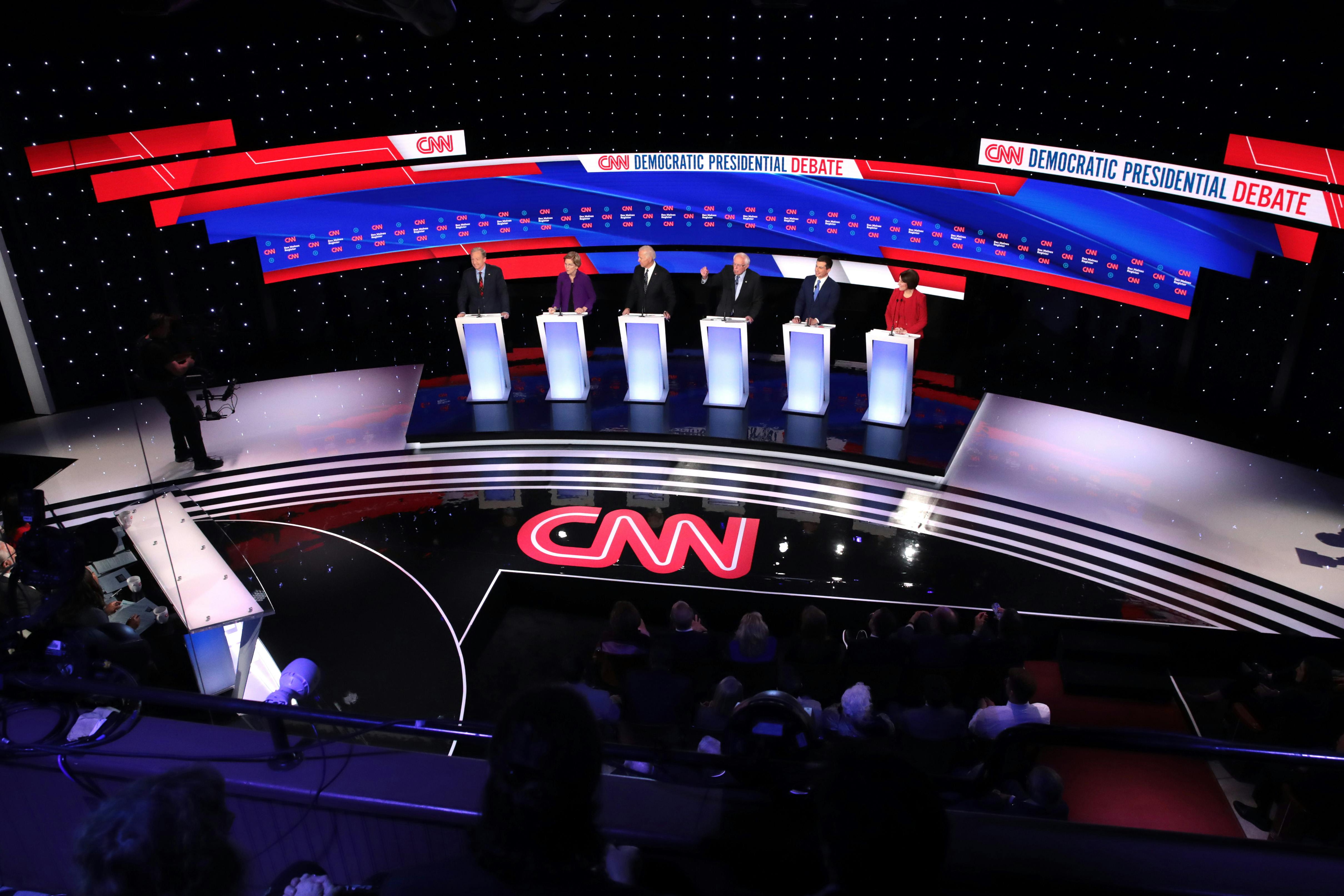 It is essentially a cliché now to point out that the turgid question, “How will you pay for it?” seems to only get applied to left-wing priorities—never to endless war, or to the cost of maintaining the status quo. But Tuesday night’s debate presented a particularly stark example. The affair began with repeated questions on Iran, including asking candidates point-blank if they would promise not to let Iran get a nuclear weapon. The question, which implied that a full range of force could and should be marshaled to prevent this outcome, was accompanied helpfully by a chyron asking if the candidates would promise Iran would never have a bomb, “as Trump did?” In a sensible world, someone in the Democratic Party might see that chyron and wonder why their candidates are being held to the standard of promising to be a Republican. They then might ask themselves whether these debates are doing a good job of helping Democrats pick the candidate they want.