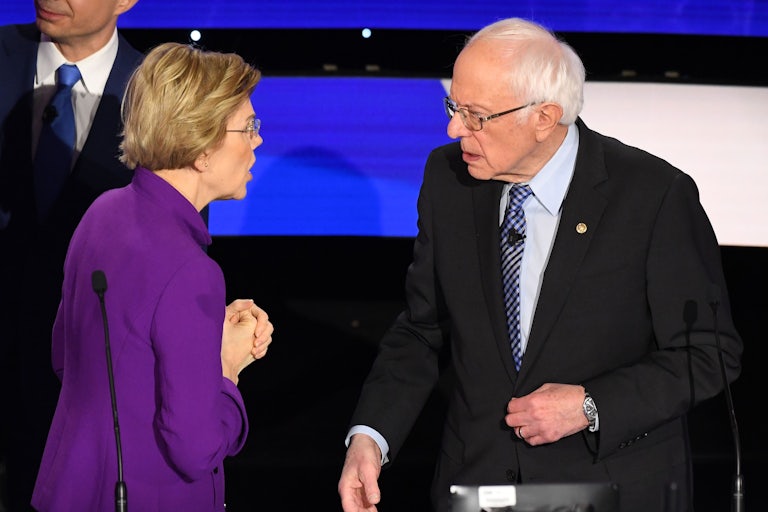 It is impossible to definitively say that what happened next was directly related to the script kerfuffle, but you would have to have the pitiable brain of a particularly pliant kitten to think it wasn’t. On Monday, CNN—followed by BuzzFeed and The New York Times—cited anonymous sources close to Warren claiming that in a private 2018 meeting about the presidential election, Sanders had told Warren that a woman could not win the election. Sanders denied it vociferously and on the record; Warren initially declined to comment and then came out, hours later, with a carefully worded statement. On the debate stage Tuesday, the same dynamic played out, with CNN cheerfully carrying water for Warren’s interpretation of events. (Less noticed was a story in the Daily Beast that alleged a Sanders volunteer had described Warren as not being in favor of Medicare for All. This is another case of very curious timing.)