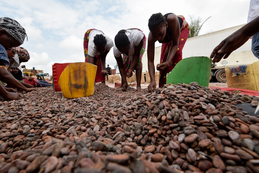 Chocolate has gotten a bad rap for its environmental impacts—particularly deforestation, as farmers cut down older trees in order to clear room for cacao plants. The Ivory Coast, which is the largest exporter of cocoa at 2.2 million tons every year, has lost 80 percent of its forests in the past five decades. And the forests being cleared for cacao farming are exactly the ones that tend to be the best carbon sinks and sources of biodiversity: Cacao trees thrive in rain forests, where there’s plenty of humidity and rain, stable temperatures, rich soil, and protection from strong winds. All of this combines to make chocolate one of the worst foods one can eat in terms of greenhouse gas emissions—by some calculations, the single worst nonmeat food.
