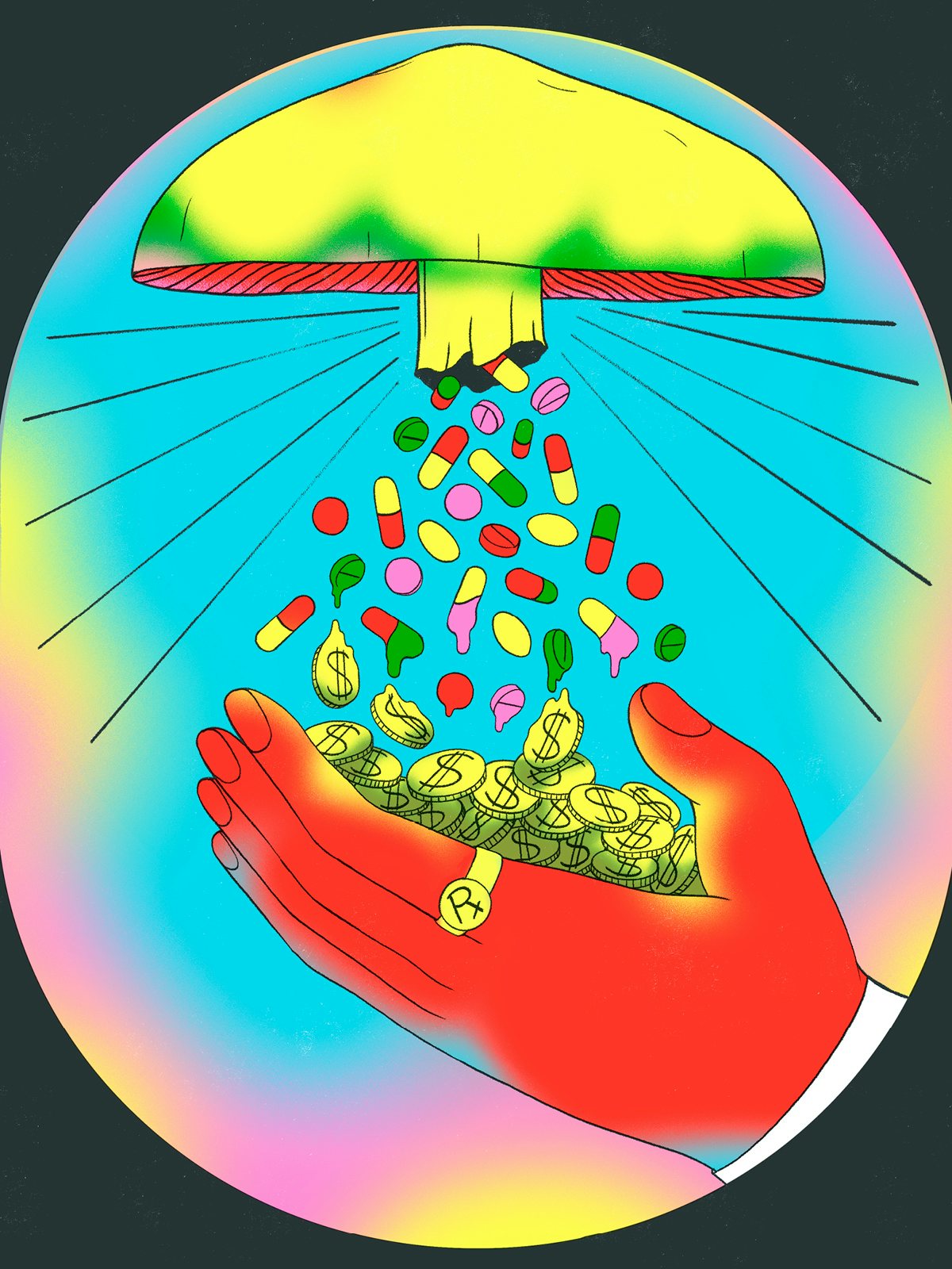 O’Leary has put his money where his mouth is: He’s a recent investor in MindMed Inc., a company dedicated to “advancing psychedelic-inspired medicines through clinical trials.” MindMed is one of a few companies attracting serious capital (so far, it’s raised about $24.2 million) to test “neuropharmaceuticals.” It is also, as of March 2020, the first publicly traded psychedelic pharmaceutical company. Unlike the doctors at Johns Hopkins, whose research suggests that guided therapy with high doses of psychedelics can facilitate meaningful changes in patients, neuropharmaceutical operations like MindMed are looking for high-margin returns on the microdosing model. “I don’t think one can say that you can solve everyone’s problems with a single dose of psilocybin,” says MindMed co-founder and co-CEO JR Rahn. “There’s the profound effect of these substances, and they have therapeutic benefit.... But on the other side of the spectrum, can we make medicines out of these substances and not have them necessarily be hallucinogenic?”
