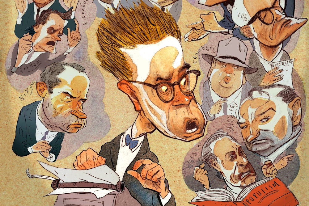 Hofstadter debuted his argument in his Pulitzer Prize–winning 1955 study The Age of Reform, and as the Cold War drove American politics, on the right especially, into operatic new registers of derangement, Hofstadter updated and expanded this general theory of cultural lag into a diagnosis of the distempers of the reactionary anti-modern mind. The two works now anthologized by the Library of America, Anti-Intellectualism in American Life (1963) and The Paranoid Style in American Politics (1964), showcase Hofstadter’s most ambitious efforts to supply a unified theory of the American romance with cultural reaction.