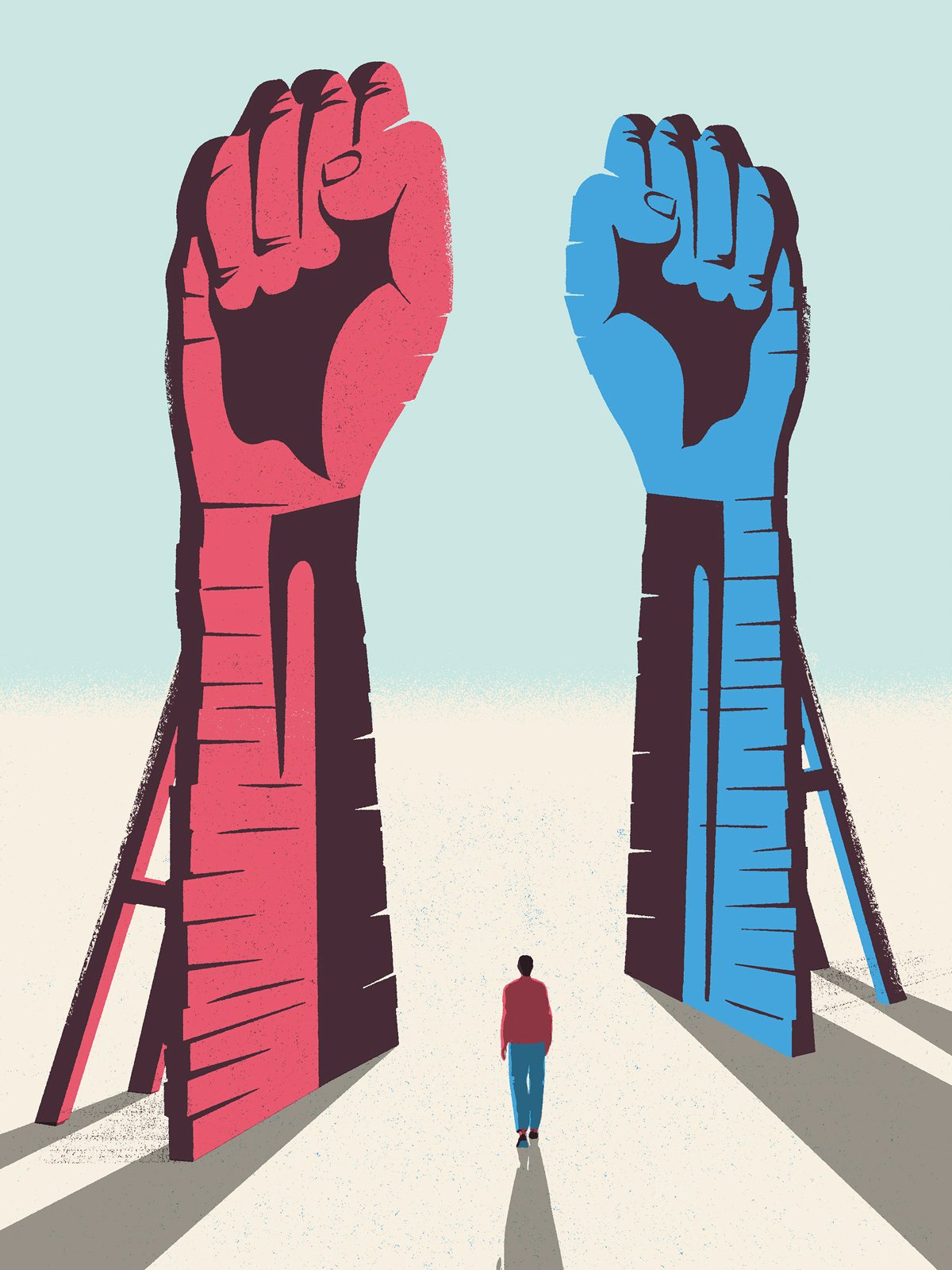 Why have voters taken to polarization so easily? Of all the forces thought to drive political attitudes and action, Klein focuses almost exclusively on the behavioral dynamics theorized by evolutionary psychologists. “Human beings evolved to exist in groups,” he writes. “To be part of a group, and to see that group thrive, meant survival. To be exiled from a group or to see our group crushed by its enemies, could mean death. Is it really so strange that we evolved to feel the life and death stakes of group belonging and status?” He cites a ream of research to ensure the reader agrees: On one page, he gives us a study on schoolchildren asked to allocate money after being separated by invented test scores; on another page, we get a paragraph about “micro-awakenings” during isolated human sleep, evidently a self-defense mechanism that ensures our bodies are on guard when there’s no one around to protect us. All the evidence suggests “it takes almost nothing for us to form a group identity,” Klein writes, and once those identities take shape, intense competition between groups naturally follows. As this theory would have it, the conflicts that characterize contemporary American politics are, to a large extent, outgrowths of the primitive brain.