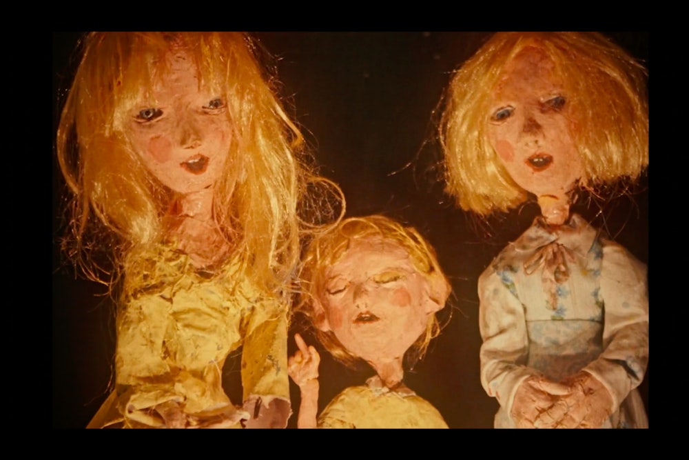 Maria and the pigs are sometimes painted, sometimes three-dimensional, but constantly morphing, and the environment around them morphs, too. Images mutate according to the logic of dreams and emotion. This is not Wallace and Gromit: Every aspect of The Wolf House is ragged and unfinished, with the rough and plastery feel of a Paula Rego sculpture. (Indeed, Maria’s pig creatures at times mimic the Paula Rego sculpture Prince Pig.)