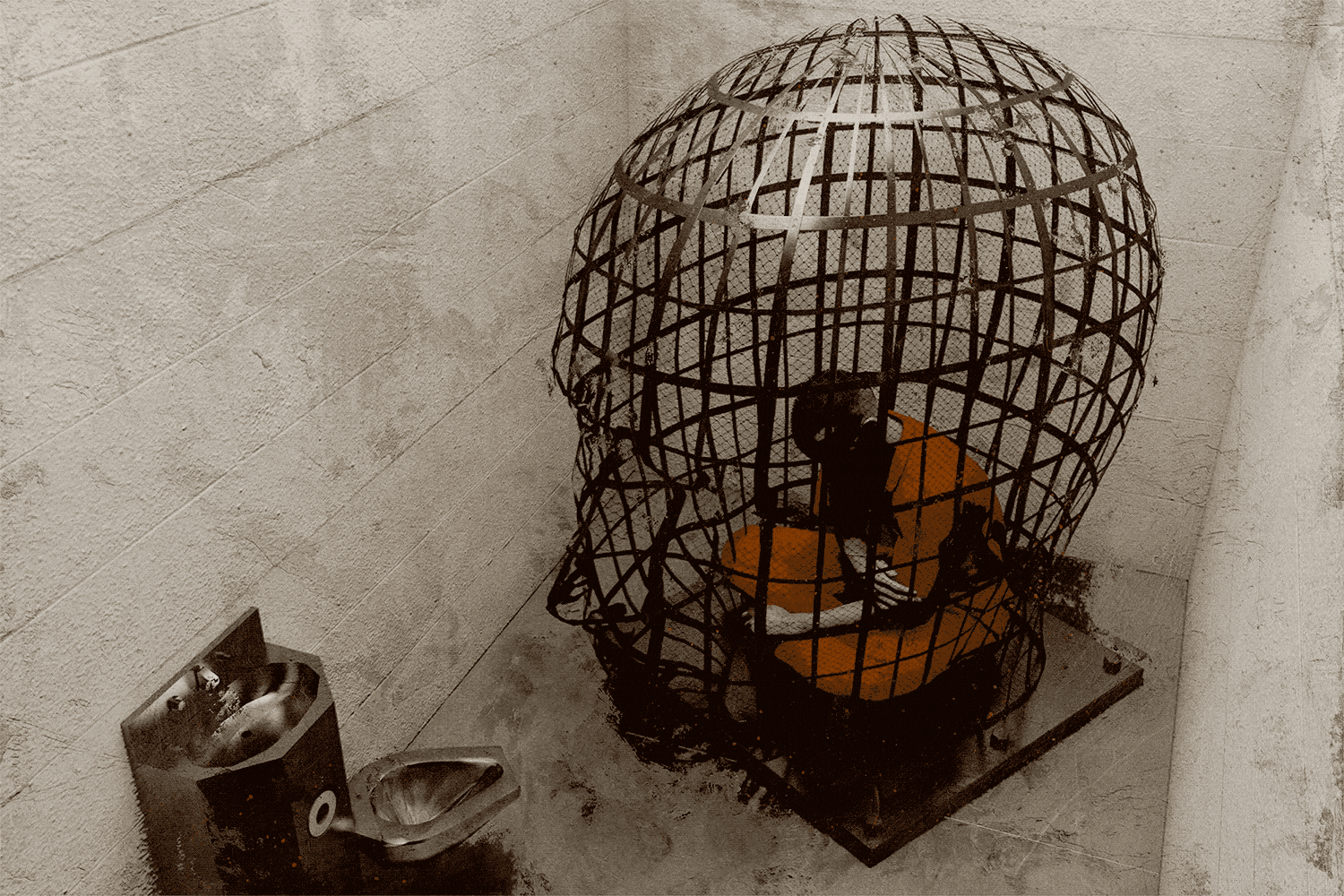 The pulse of IMU is the unremitting sound of madness. It pervades every part of the facility, reverberating through the concrete walls of the cell, the soles of your bare feet, your bones, your teeth. There is no time without the jarring slam of steel doors, screaming. You can hear the riot-suited guards with batons and Taser shock shields enter cells to “extract” prisoners. A guard passes through the block every 30 minutes with a heavy rubber mallet he uses to strike every wall, door, and cuffport to ensure the cells are all secure.
