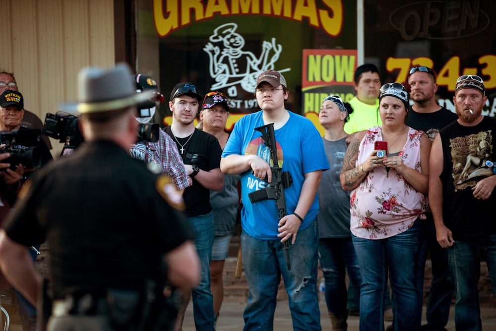 I saw this work in real time at a protest in Newark, Ohio. The day before the protest, rumors spread that antifa activists were being bused in to turn the protest violent. A group from out of town, calling themselves the Ohio Patriots, arrived instead. They wore military-style uniforms and carried guns. They positioned themselves around the square ostensibly to protect the community from outside agitators.