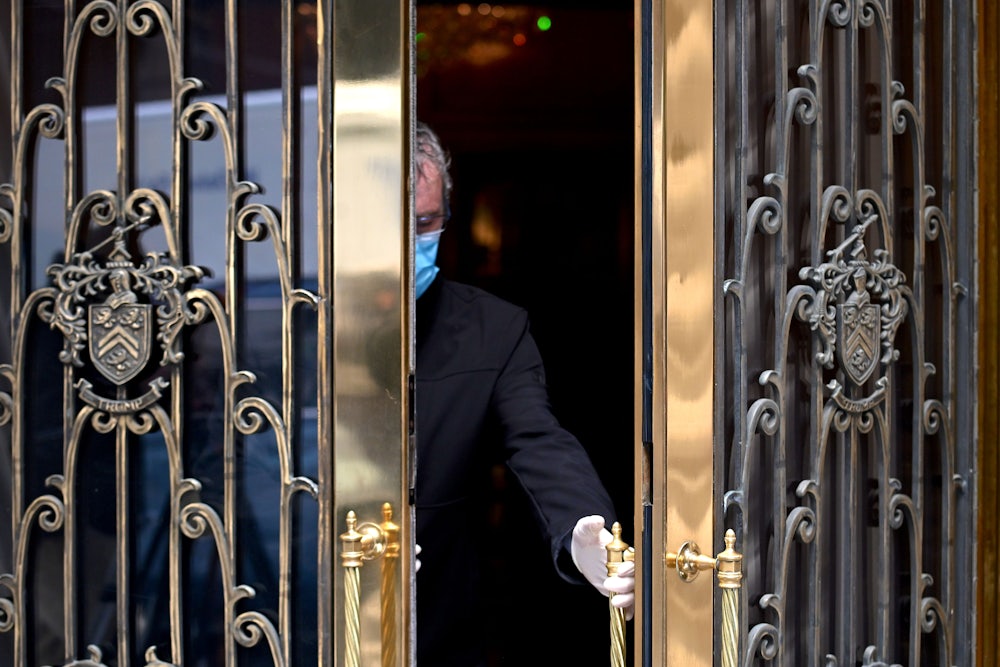 The rich have always sought to create private worlds of their own, cordoned off from the rest of the country and insulated from the violence their resource hoarding inflicts on others. What the coronavirus has provided is a common denominator, a single ongoing event that has exacerbated every existing form of inequality and inspired among the elites a certain kind of brashness about getting what they believe is theirs to take: jumping to the front of the line to get tested, hiring concierge doctors, and organizing private drive-through testing sites. And now, a life uninterrupted by a pandemic while others struggle to secure the basics for themselves and their families.
