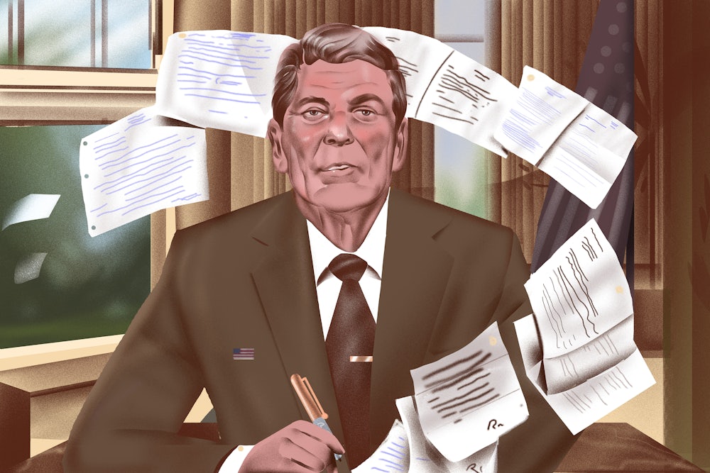 Recipients frequently responded to the SP letters in effusive, highly personal terms. So it was that several rounds of animated correspondence with “Nat”—neoconservative Harvard sociologist Nathan Glazer—followed an SP on the subject of subway graffiti and urban disorder as well as “the relative attractiveness of welfare to work.” It’s possible that Reagan was involved in composing his own side of the exchange, but it’s likely that he was not. It’s almost like a 1970s Turing test—one that every Reagan scholar I’ve read fails. Letters like the one to Kirkpatrick pulled from the “SP File” at Hoover are quoted as if crystalline portraits of the interior of Ronald Reagan’s mind.