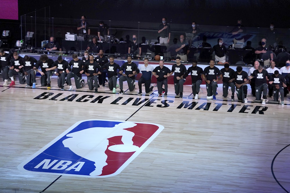 When the first few games of the NBA bubble started in late July, the league took great care to make sure that all the correct visuals were in place. The NBA understood that to maintain the careful balance of being a player-driven league—as opposed to the NFL with its devotion to “the shield”—and the most “progressive” of the four major sports leagues in the United States, it couldn’t afford to ignore the protests that erupted after a Minneapolis police officer knelt on George Floyd’s neck, ignoring his pleas as he used his final breaths to cry out for his mother.