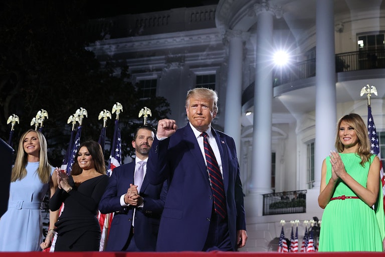 In Trump’s telling, he must be reelected because only he can hold back the onslaught of the assumed Democratic voters—essentially coded as nonwhite throughout this convention—who are currently tearing apart cities while being applauded by Democratic leaders. The president and his allies have relentlessly hyped this issue during the convention, making the case that Trump is a necessary bulwark between the country and chaos. Without any accomplishments or a second-term agenda, this is all Trump has: Vote for me, or Democrats kill your family. It’s a significantly more authoritarian vision than the one he advanced in 2016, because it posits that voting against Trump is, in itself, an act of illegitimacy.