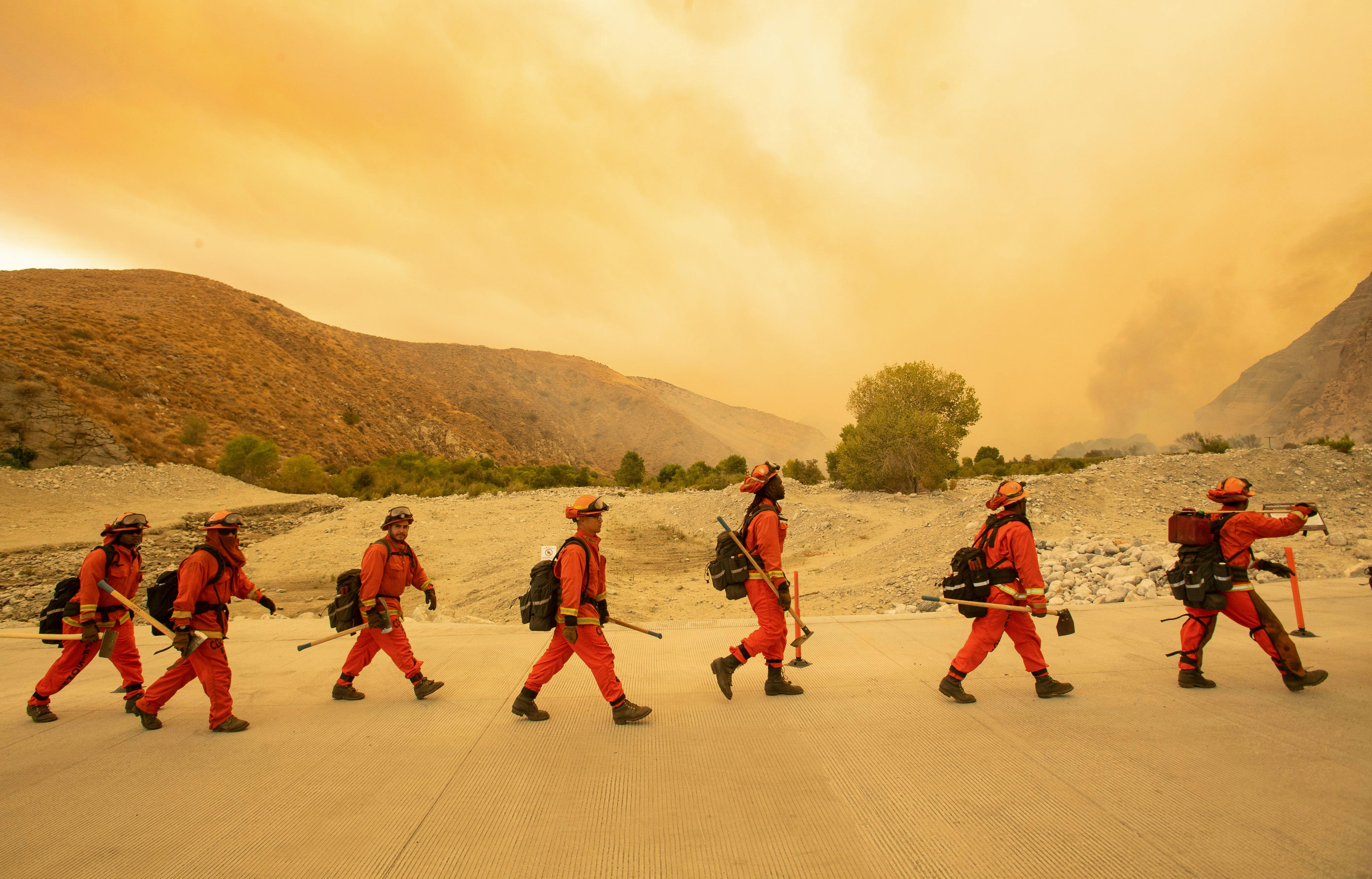 They do the same work in teams of 20 to reduce “fuel” for the fire—clearing brush away, digging out roots, cutting down trees, in shifts that can run for 24 hours depending on the fire. “Nobody out here is really cutting brush,” Smith said. “Nobody is really doing that work except the people currently in fire camp.” It’s hard work, often neglected by the agencies responsible for it, and completed for poverty wages.
