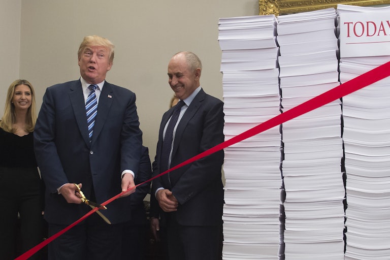 Even the mechanisms that are meant to enforce compliance with existing tax law more often punish the poor than they rein in the rich. A few years ago, ProPublica found that the IRS was more likely to audit an individual making $20,000 than someone making $400,000. That cruel phenomenon is itself one consequence of austerity; as the IRS admitted to Congress last year, it requires far fewer resources to audit people with no money than it does to audit people with too much of it, and Republicans have successfully chipped away at the IRS budget over the last decade. While Trump was able to claw back massive refunds, thanks to business deductions, working-class people who have found themselves subject to IRS audits are left without much-needed cash. “You expect this money during tax season, and you don’t get it,” Paul McCaw, a forklift operator whose refunds were withheld for several years in a row due to audits, told ProPublica. “It tears you down.”