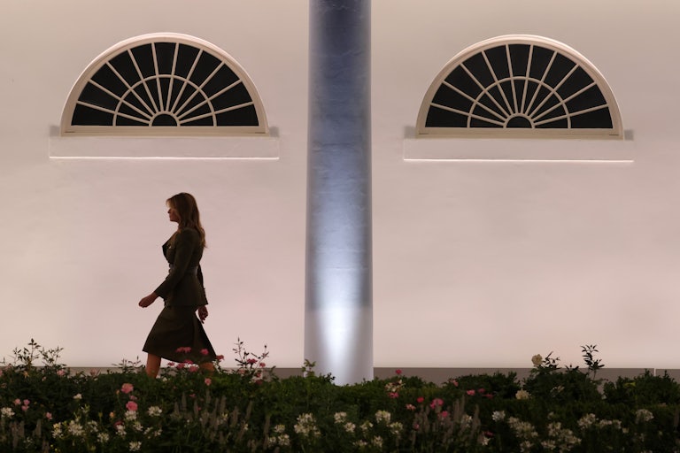 While the president spent a whirlwind weekend enacting increasingly bizarre and dangerous performances meant to demonstrate his apparent rugged health, from Walter Reed Hospital, Melania convalesced quietly at the White House. She was, as chief of staff Stephanie Grisham told USA Today earlier this week, “doing well in the residence and had stayed in contact with the president by phone.” In the days since, we’ve witnessed a familiar cycle of coverage that positions her as a foil to the president—a first lady making responsible choices in contrast to her husband’s recklessness.