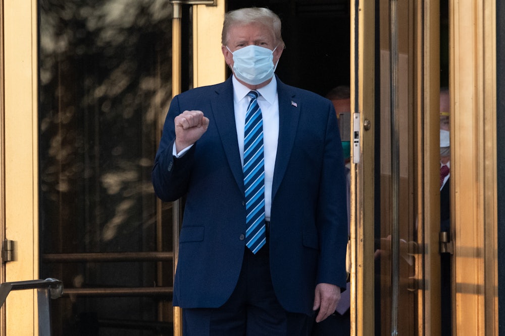 The president of the United States—the guy who entered the 2016 presidential race saying he didn’t think John McCain was a war hero because “I like people who weren’t captured”—has Covid-19. He doesn’t see this as a misfortune. He sees it as a challenge, one that demonstrates that he’s a winner.