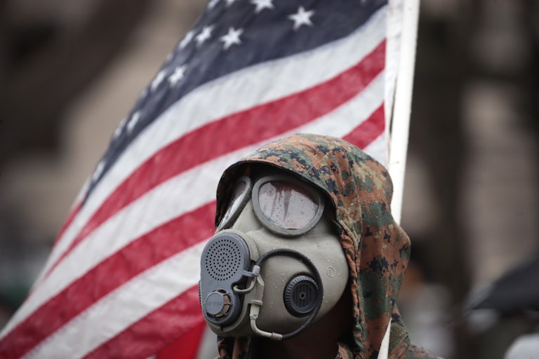 This is a familiar story. These elements—militarism, whiteness, masculinity, and racism—form the bedrock of not only the militia movement but its intimate connections with American democracy. All 13 of the people facing state and federal charges in Michigan are men; all are white; some spent time in the military, including the alleged founder of the Wolverine Watchmen, Joseph Morrison, who was a Marine. And while their stated goal was to use private violence against the state, these men had support across various levels of government: Just a few months ago, one was sharing the stage with county sheriffs during an “anti-lockdown rally” critical of Whitmer. Shortly after some of them participated in armed protests at the Michigan state capitol while wearing camouflage and carrying guns, President Trump himself offered his endorsement, “Liberate Michigan!”