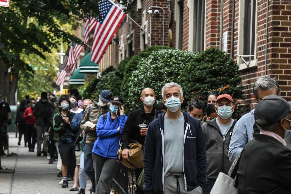 Standing in front of a gaggle of press on a New York City sidewalk, Representative Alexandria Ocasio-Cortez assessed the situation playing out during the city’s first three days of early voting in the 2020 general election—lines wrapping around the block, people being forced to stand for hours just to cast their ballot—and called the mess for what it was: voter suppression. “There is no place in America that two-, three-, four-hour waits to vote is acceptable,” Ocasio-Cortez said. “Just because it’s happening in a blue state doesn’t mean that it’s not voter suppression.”