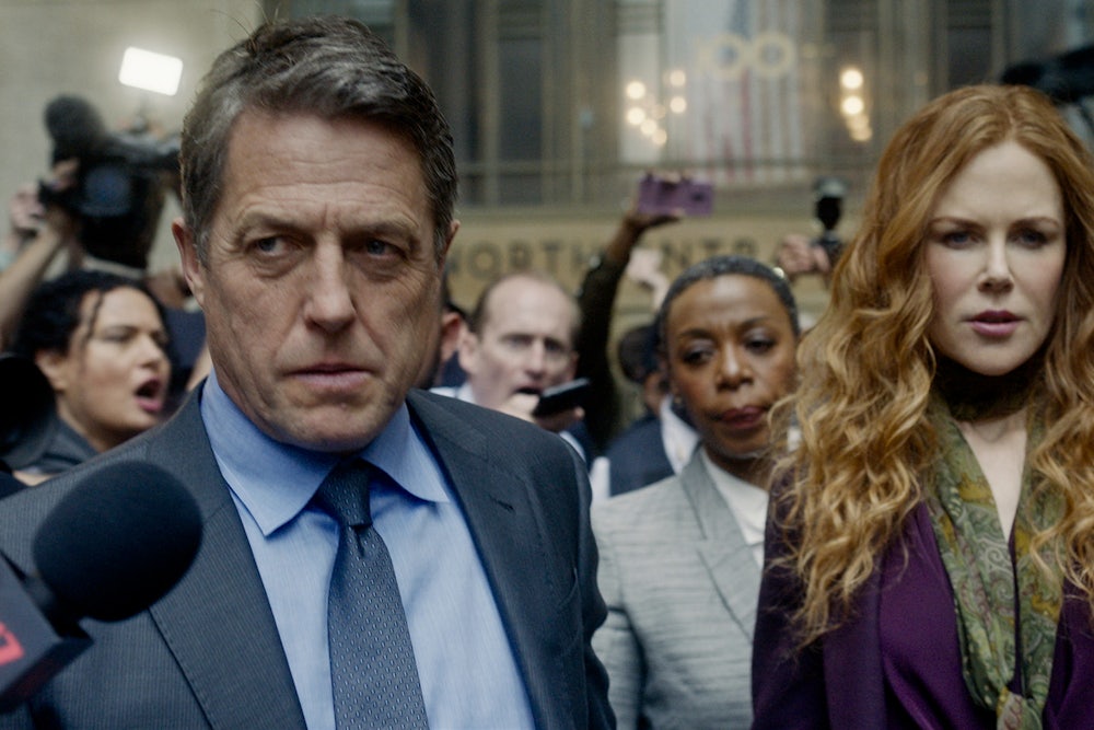 As a couple, Grant and Kidman’s chemistry is strong, and there’s even a sense of meta-commentary on each actor’s own careers going on here. From her hairstyle to her unflinching eyes, Kidman looks a lot like she did in Eyes Wide Shut, another New York–wife role, but this time she strides to the center of the story. Jonathan is written as American in the book, but Grant uses his own accent in the show, to unexpectedly great effect: By deploying the same posh-boy, doe-eyed charm at other characters that he himself used on the public in his Richard Curtis heyday, Grant pastiches his own former typecasting while showing, autopsy-style, exactly how terrifying it can be.