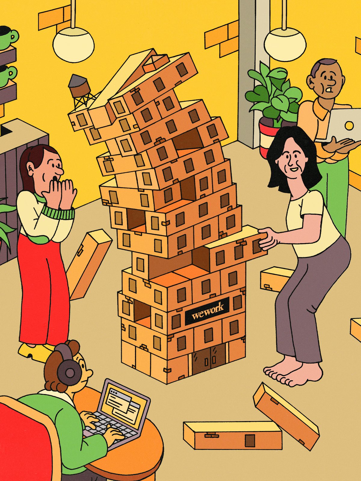 Though the WeWork brand would eventually become synonymous with co-working office rentals, several other companies were also launching or expanding co-working setups. One firm, Regus, had even attempted the experiment a decade earlier, only to find itself facing bankruptcy when the dot-com bubble burst and office tenants canceled their monthly memberships. This flaw in the co-working business model—that is, holding long-term leases on expensive office spaces while offering short-term cubicle rentals to freelancers—hadn’t been resolved by the time Neumann and McKelvey opened WeWork, nor did they have any solutions of their own. But WeWork quickly took off, thanks to Neumann’s preternatural ability to charm flush investors and those same investors’ slavering to find the next Uber or Amazon.