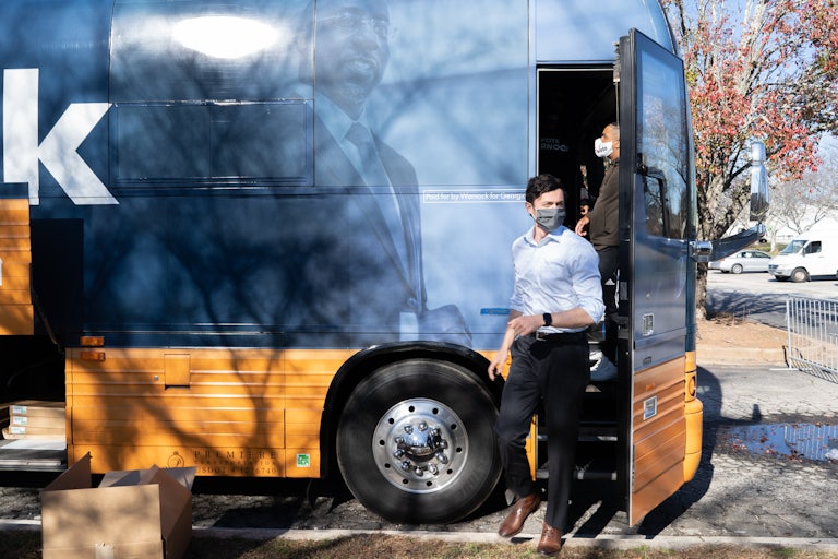 Ossoff also puts health care and the pandemic first in his stump speeches. “We got bigger and better things to talk about than David and Kelly, y’all,” he told the crowd in Conyers. “We need stimulus for people, economic relief. We need resources for doctors, clinics, and nursing homes. We have good work to do y’all.”