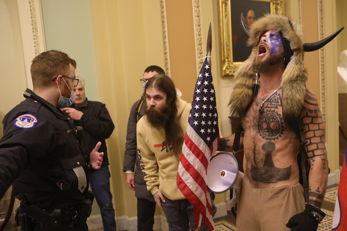 I am trying to cope with anti-democratic social collapse during a pandemic by reading local news stories about the people who stormed the Capitol. There was the remorseful CEO from the Chicago suburbs—“In a moment of extremely poor judgment … I followed hundreds of others through an open set of doors to the Capitol building”—and the son of a Brooklyn Supreme Court judge, wrapped in fur and a bulletproof vest, seen in photos carrying a police riot shield because he “found it on the floor.”