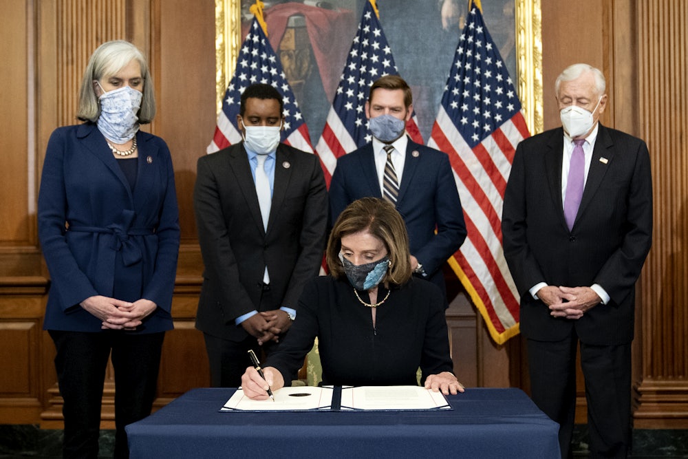 Nancy Pelosi, taking the unusual step of speaking on the floor at the start of the impeachment debate, declared, “The president of the United States incited this insurrection, this armed rebellion, against our common country. He must go—he is a clear and present danger to the nation that we all love.” That is sadly true, but thanks to McConnell, the “clear and present danger” will nonetheless continue until the final seconds of Trump’s four-year term of office.