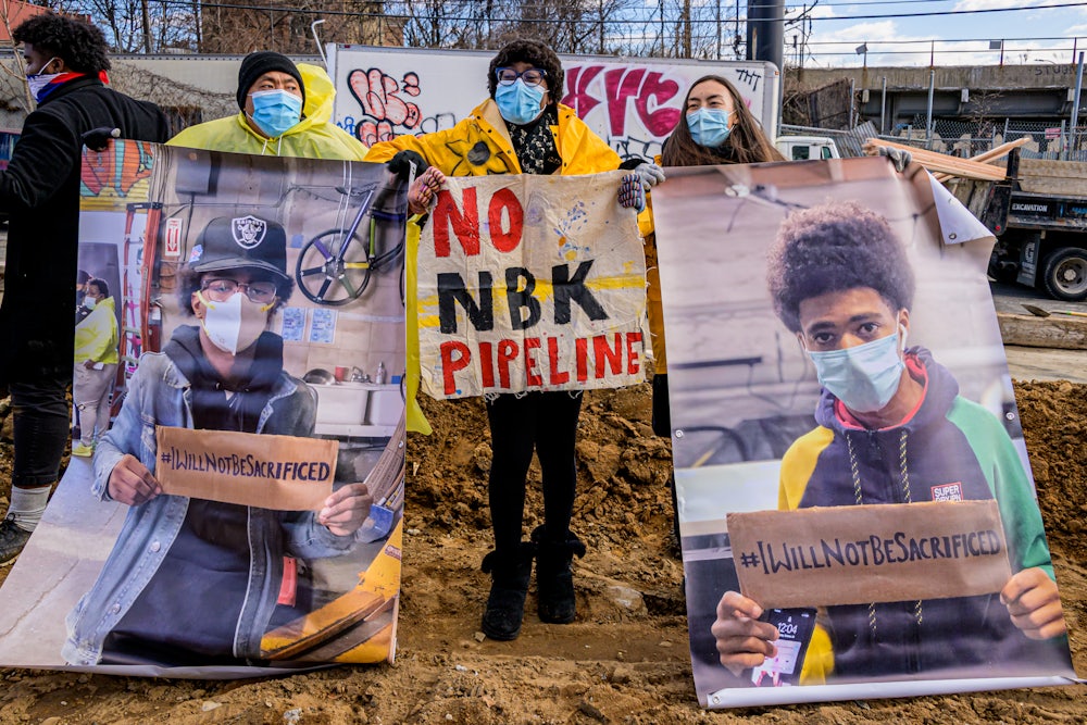 On a chilly December morning, Gabriel Jamison stood in front of a construction site in Brownsville, Brooklyn, with a sign and a megaphone. “National Grid has the nerve to sit there and come into a low-income neighborhood,” Jamison said, as National Grid employees continued to work in the background. “We’re not going to tolerate that.” Surrounded by a handful of other demonstrators, Jamison was protesting the expansion of a fracking pipeline by National Grid, an energy company that serves New York, Massachusetts, and Rhode Island. Within two hours, they could call the day a temporary success: Construction stopped. The National Grid workers packed up their gear and left.