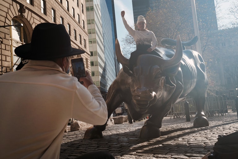 Robinhood’s CEO speaks of democratizing finance, equating it to homeownership as something that every American should aspire toward. George W. Bush made a similar call for a society of homeowners, just as banks began trading in complex financial derivatives and pressing mortgages upon people who couldn’t afford them. The resulting bust nearly took down the global economy. As for the goal of universal stock ownership, we have a ways to go—55 percent of Americans own some form of stock, according to Gallup, a number that’s declined in recent decades. Large investors like the hedge funds so hated by r/WallStreetBets still dominate the finance industry and—at least before this week—are the ones who have the capacity to move markets. For most of us, then, the GME phenomenon is bizarre and fascinating but probably removed from one’s material concerns. As the pandemic has demonstrated, the health of the stock market in no way reflects the health of a wider economy afflicted with record hunger and poverty.