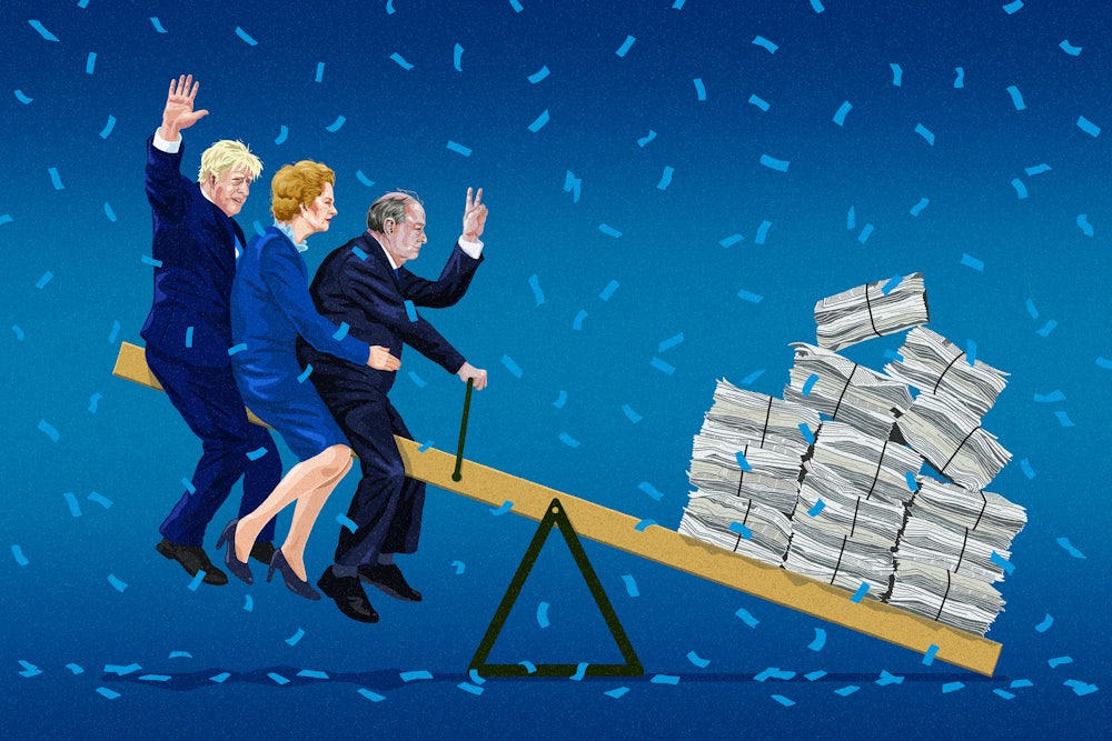Ash: Well, I’d historicize it a bit longer. This idea that Conservatives fundamentally are about conserving the status quo isn’t quite right. They’re about conserving the interests of the ownership class, right? And then who that ownership class is obviously changes, but different historical trends—moving from a productive to a rentier economy being a massive one—and Conservatives actually have proved remarkably adaptable to those changing contexts, and indeed have accelerated those changes as well. So who’s the most successful Conservative politician of the last century? It’s Margaret Thatcher. We’re still living under Thatcher’s rule, 40 years later. And she tore up the social contract. She tore up the compact that had been made between labor and capital and which had lasted since the Second World War, and we’re still feeling the repercussions from that.