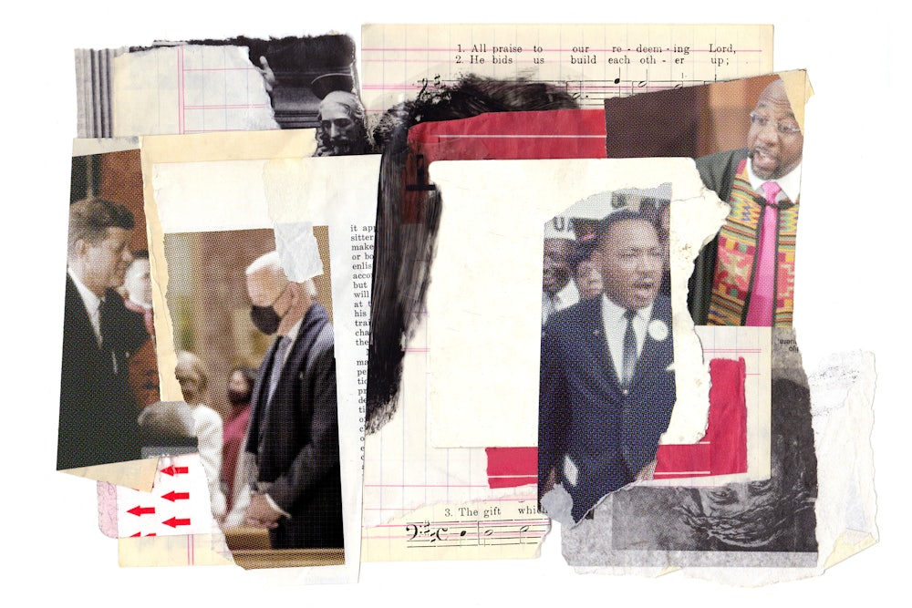 These developments didn’t come out of nowhere. Well before the advent of Trumpism, there were hopeful signs of a renewed spiritually minded sensibility on the left, particularly within Black churches. The Reverend William J. Barber II of Goldsboro, North Carolina, the former head of the state’s NAACP chapter, launched his “Moral Mondays” protests at the state’s General Assembly building in 2013. And the Reverend Raphael Warnock, now best known as one of the two senators elected in January’s Georgia runoff election to tip majority control of the chamber to the Democrats, had for over a decade held Martin Luther King Jr.’s former pulpit at Atlanta’s Ebenezer Baptist Church. Like Barber, Warnock has preached an urgent social-gospel message—combining calls for Medicaid expansion and police reform with grassroots voter registration drives, including those captained by his state’s former Democratic gubernatorial candidate Stacey Abrams. (It’s not for nothing that the voter suppression legislation recently approved by the state legislature in Georgia targets Sunday early voting for elimination—Sunday voting is one of the most powerful engines of Black turnout.)