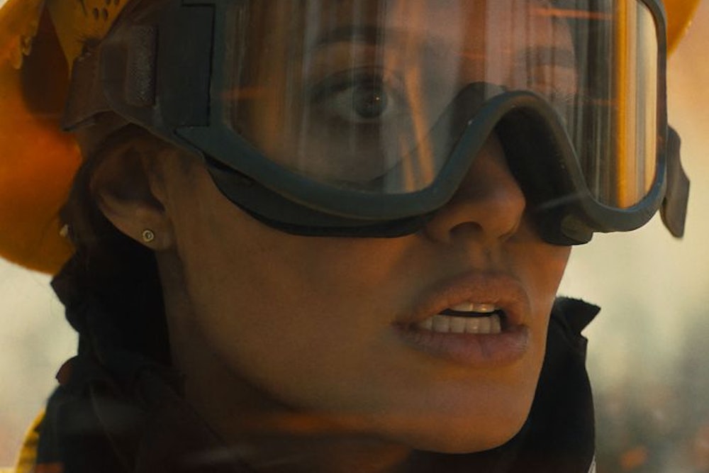 There’s a scene in Those Who Wish Me Dead where Allison Sawyer, a heavily pregnant side character played by Medina Senghore, blasts a bad guy in the face with a lit aerosol can before riding away through the forest on a white horse. The mere fact of a Black outdoorswoman getting such cool action in a natural disaster movie, a genre that frequently treats white characters as the only ones worth saving, is refreshing in itself. But Those Who Wish Me Dead, which stars Angelina Jolie as a smokejumper—those firefighters who parachute in to fight wildland blazes—is surprising in a number of ways.